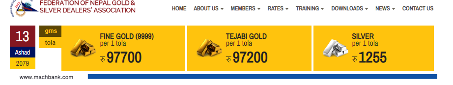 यस्तै, चाँदीको मूल्य पनि आइतबार १० रुपैयाँले बढेर १ हजार २ सय ५५ रुपैयाँमा कारोबार भइरहेको महासंघले बताएकाे छ।
