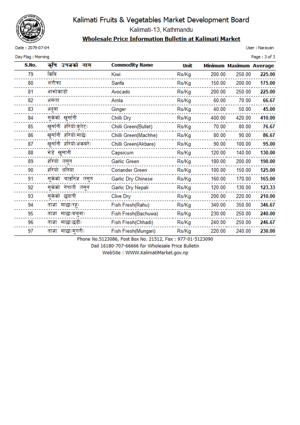 कालिमाटी फलफूल तथा तरकारी बजार विकास समितिले तरकारी र फलफूलकाे बजार भाउ निर्धारण गरेकाे छ ।